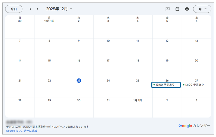 totoco-netとGoogleカレンダーを連携させた際、「プライバシーを守りながら、予約可能な時間帯だけを外部に公開する」という運用が可能です。